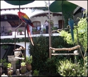 The Porta Hotel Antigua is in walking distance from the schools I visited (if you’re like me, a New Yorker who likes to walk) and a lovely morning walk it was. The concierge’s directions included this delightful instruction: “walk one block to the left out the hotel main door, then go right when you reach the ruins.” Your family can stay behind and enjoy the pool, the playground and the lush interior courtyard with its resident parrots and macaws, following their breakfast buffet (your family’s not the bird’s) in the hotel (for about $25 a person.)