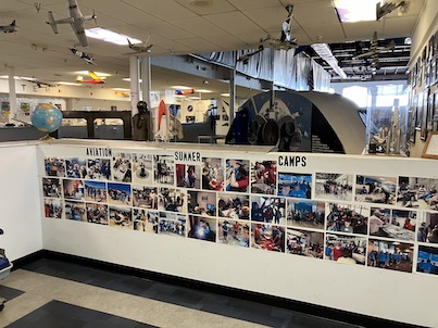 Airplanes are on view in the hangar-like building, flight simulators, an air traffic control tower, videos and exhibits such as the one honoring the Tuskegee Airmen; the local chapter meets here, school groups visit, birthday parties and galas are held, and a summer camp has brought in speakers such as Gigi Coleman, the grandniece of Bessie Coleman, the first woman pilot in the U.S.