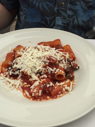 Lunch at Ristorante La Cisterna del Moro . LaCisternadelMoro@gmail.com. View of the sea from the outdoor (covered) dining area. Spaghetti carbonara!